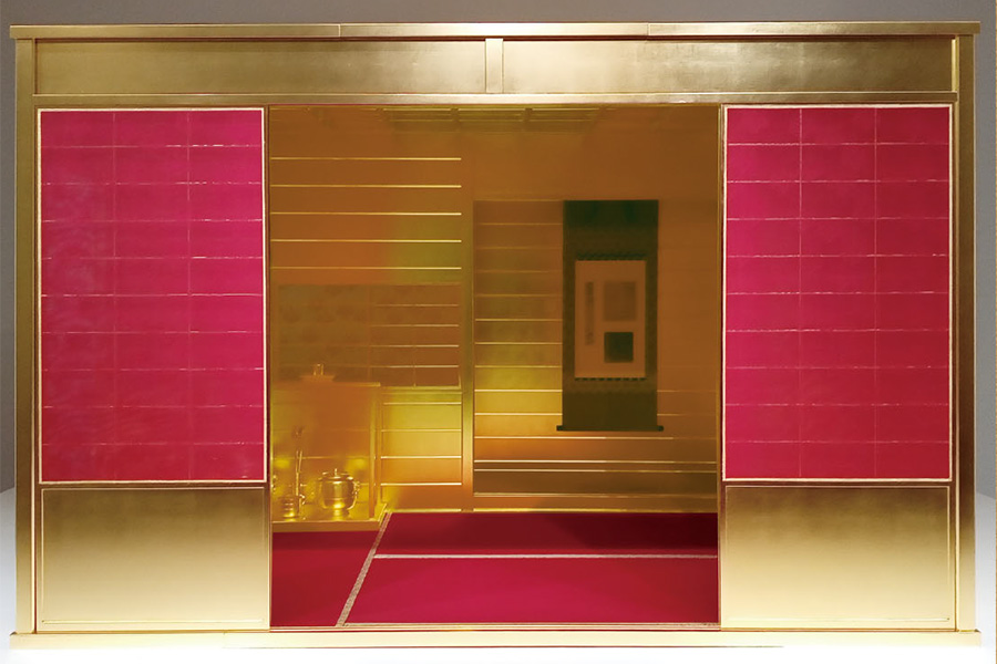 京都伏見桃山城所蔵の「黄金の茶室」を特別に展示いたします。安土桃山時代の1585年(天正13)に豊臣秀吉が造らせた金箔張りの茶室を復元したもので、小倉にゆかりのある武将たちと深い関係のあった豊臣秀吉、千利休など、茶の湯に欠かせない歴史の一端をお楽しみください。