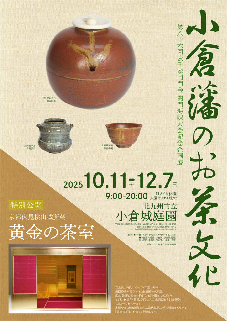 令和7年(2025年)11月8日(土)、9日(日)の両日、第86回表千家同門会全国大会が「関門海峡大会」として、北九州市と下関市の各会場で開催されます。小倉城庭園には家元席が設けられる予定です。