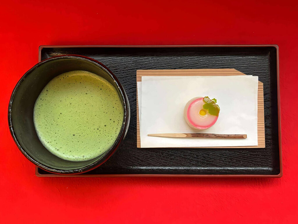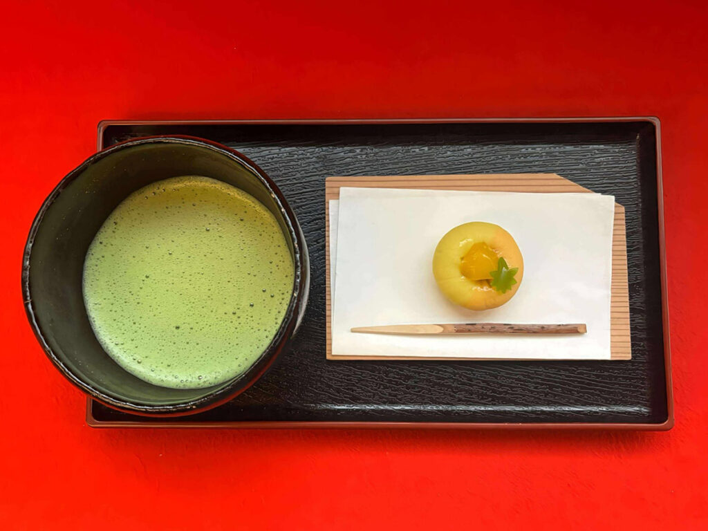 目の前で点てたお抹茶と共にいただくアフタヌーンティーセット。