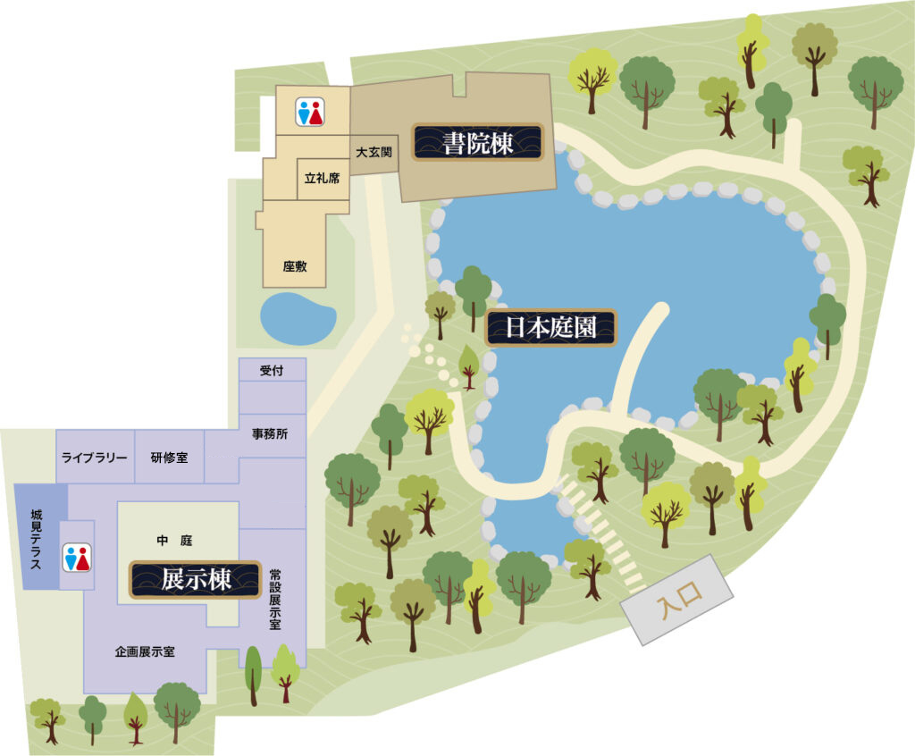 北九州市立小倉城庭園は、小笠原家の別邸であった下屋敷(御遊所)跡を復元した大名庭園と、江戸時代の典型的な武家書院を再現した文化施設です。さらに、茶室や展示棟を備え、歴史や伝統文化に触れられる場所となっています。