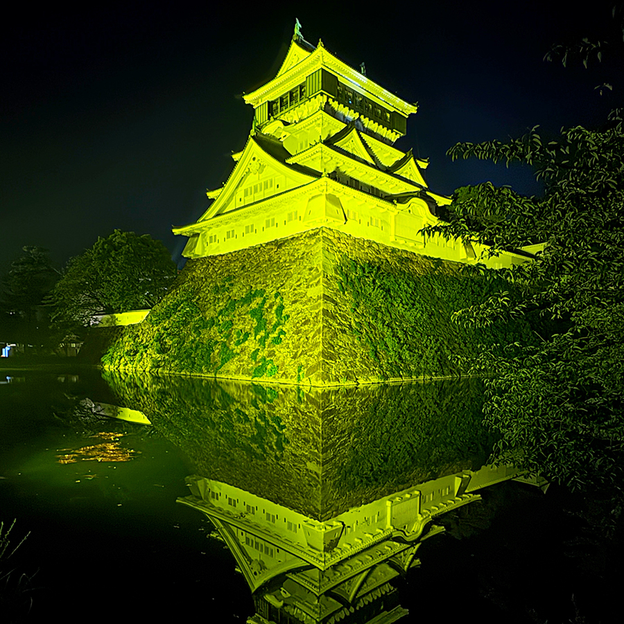 小倉城天守閣がイエローにライトアップ 4月17日から3日間 地域ボランティアの存在や取組を啓蒙